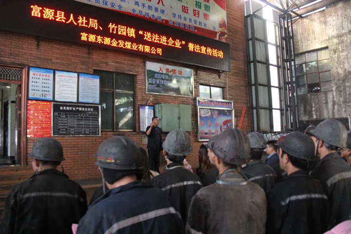 富源县人社局、竹园镇政府赴金发煤业公司开展“送法进企业”普法宣讲运动
