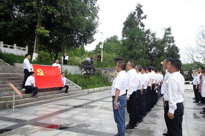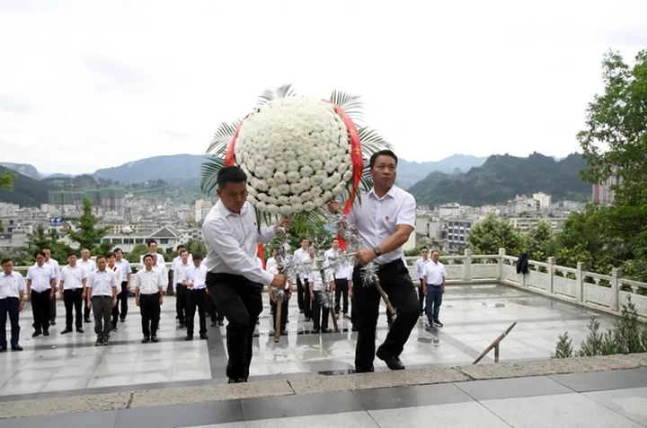 在扎西红军烈士陵园,全体党员庄严肃穆,向革命先烈敬献花篮,集团党委委员、纪委书记覃崇辉领导党员们重温了入党誓词。随后,全体党员配合旅行了扎西集会纪念馆(扎西集会旧址),接受革命古板教育和精神洗礼,从党史中罗致智慧和力量,缅怀革命先烈、传承红色基因。